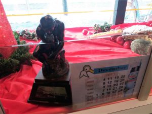 De Denker stond de afgelopen dagen bij Bakker Peter Snijers aan de Hoofdstraat. Hij heeft het goed naar zijn zin daar en is daarom een paar meter opgeschoven naar Kaaskoning Barten. Foto: De Denker bij Bakker Peter Snijers.